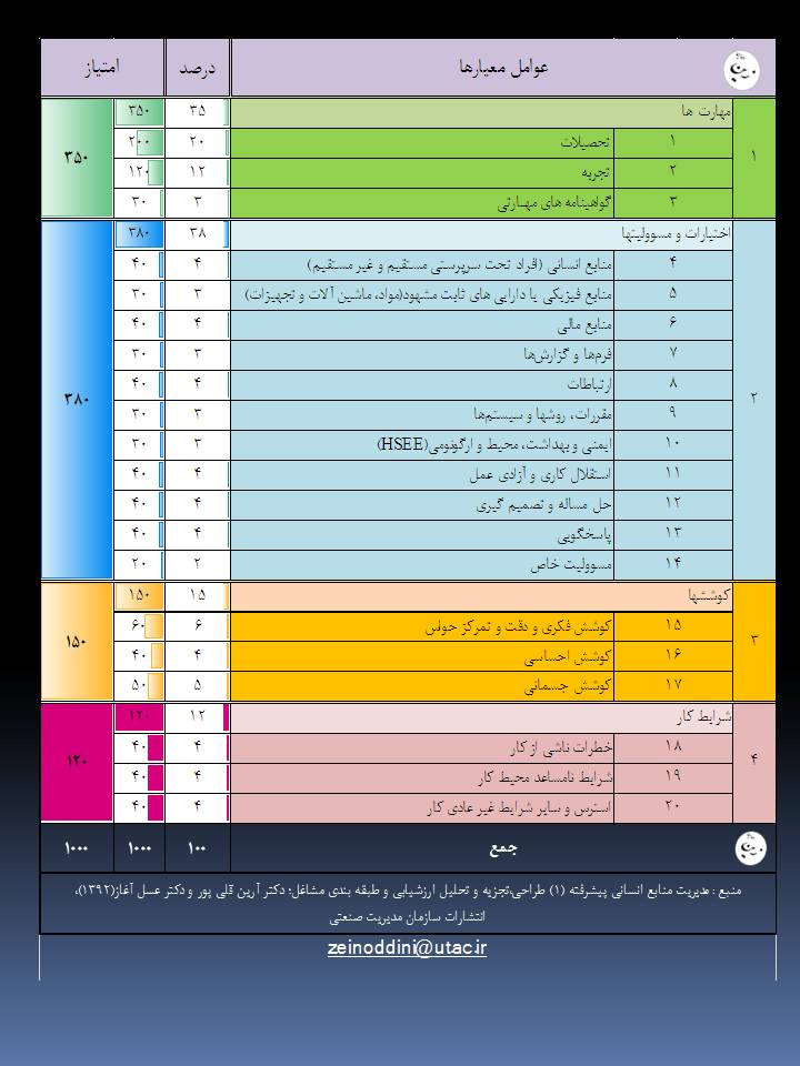 زمینه و محتوای کاری: محتوای فیزیکی، ساختار مشاغل ، شرایط و نیازهای متفرقه، محتوای اجتماعی و انگیزه ها.